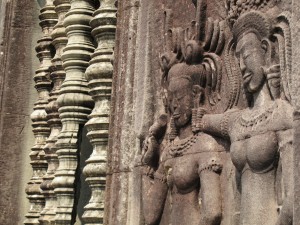 Fine detail carving at Angkor Wat